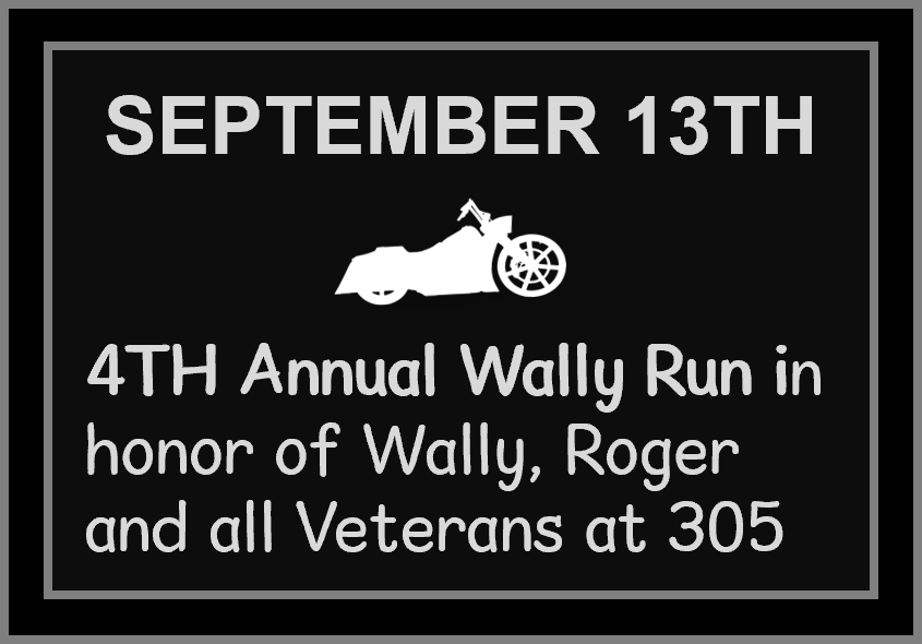 305 Riders have a plaque and are participating in the Grab and Run. To take a plaque from another post, three vested riders must be present. Seven (or more) vested riders can take two plaques. Groups can visit as many posts as they want — once per day. Each run receives points for the number of members on the run and miles traveled. The season runs from January 1st to November 30th. At the end of the season the Post with the most points wins the Grab & Run Trophy. Last year’s winner will then host a banquet for the new winner.
